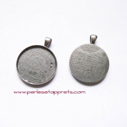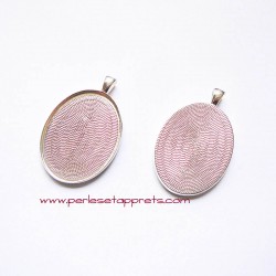 Pendentif ovale en métal couleur argent 40mm, pour cabochons, à décorer (x10)
