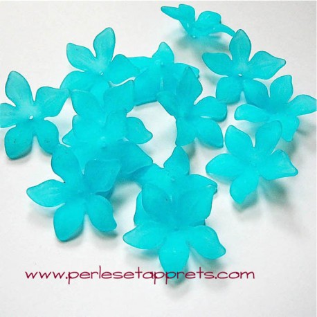 Perle fleur acrylique turquoise dépolie.