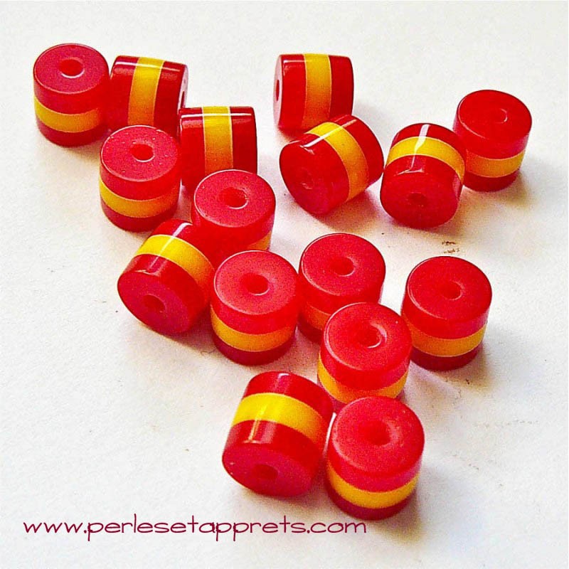Perle synthétique cylindrique rouge jaune rouge 6mm
